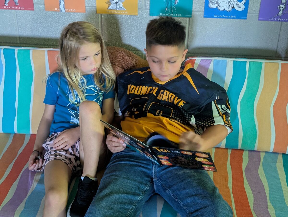 Today, our schedule was unusual with the homecoming activities in the afternoon. Teachers used the time to build community across grade levels. Mrs. Lamberson and Mr. Schneider led combined PE/music classes and Mrs. Hickman, Ms. Stantanna Stewart and Ms. Stanielle Stewart facilitated reading buddies.